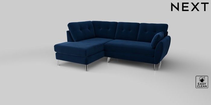 6.12.1 Buy Wilson Buttoned Back Medium Corner Chaise - Left Hand Plush Velvet Easy Clean Navy Blue Metal Tapered - Chrome from the Laura Ashley online shop Click here to use our website with more accessibility support, for example screen readers