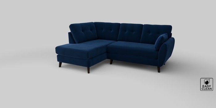 6.12.1 Buy Wilson Buttoned Back Medium Corner Chaise - Left Hand Plush Velvet Easy Clean Navy Blue Retro Tapered - Dark from the Laura Ashley online shop Click here to use our website with more accessibility support, for example screen readers