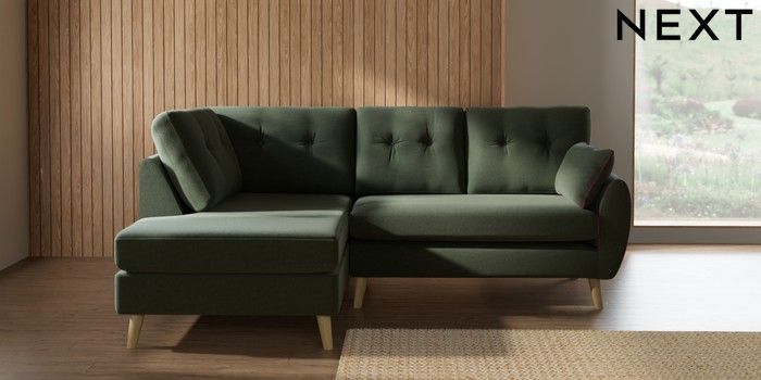 7.3.1 Buy Wilson Buttoned Back Medium Corner Chaise - Left Hand Relaxed Linen Look Dark Green Retro Tapered - Light from the Laura Ashley online shop Click here to use our website with more accessibility support, for example screen readers