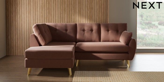 7.3.1 Buy Wilson Buttoned Back Medium Corner Chaise - Left Hand Relaxed Linen Look Light Rust Brown Metal Tapered - Gold from the Laura Ashley online shop