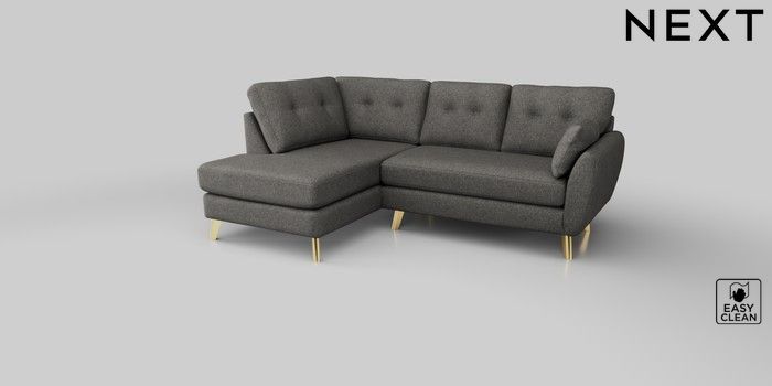 6.12.1 Buy Wilson Buttoned Back Medium Corner Chaise - Left Hand Tweedy Blend Easy Clean Dark Grey Metal Tapered - Gold from the Laura Ashley online shop Click here to use our website with more accessibility support, for example screen readers
