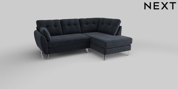 6.12.1 Buy Wilson Buttoned Back Medium Corner Chaise - Right Hand Boucle Chenille Dark Slate Blue Metal Tapered - Chrome from the Laura Ashley online shop Click here to use our website with more accessibility support, for example screen readers