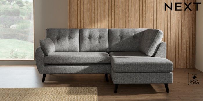 7.3.1 Buy Wilson Buttoned Back Medium Corner Chaise - Right Hand Chunky Boucle Easy Clean Light Grey Retro Tapered - Dark from the Laura Ashley online shop