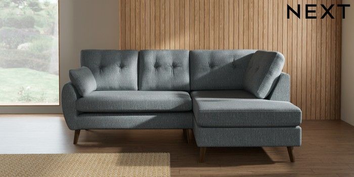 7.3.1 Buy Wilson Buttoned Back Medium Corner Chaise - Right Hand Chunky Weave Mid Blue Retro Tapered - Mid from the Laura Ashley online shop