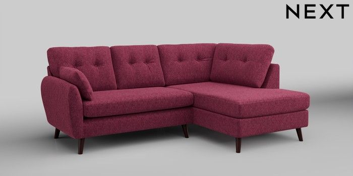 6.12.1 Buy Wilson Buttoned Back Medium Corner Chaise - Right Hand Cotswold Chenille Dark Raspberry Pink Retro Tapered - Dark Brown from the Laura Ashley online shop Click here to use our website with more accessibility support, for example screen readers