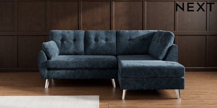 7.3.1 Buy Wilson Buttoned Back Medium Corner Chaise - Right Hand Distressed Velour Midnight Blue Metal Tapered - Chrome from the Laura Ashley online shop Click here to use our website with more accessibility support, for example screen readers
