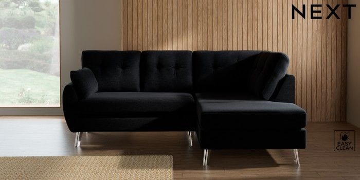 7.3.1 Buy Wilson Buttoned Back Medium Corner Chaise - Right Hand Fine Chenille Easy Clean Black Metal Tapered - Chrome from the Laura Ashley online shop Click here to use our website with more accessibility support, for example screen readers