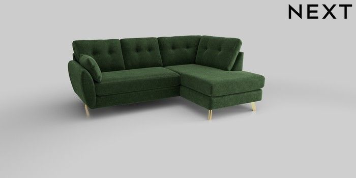 6.12.1 Buy Wilson Buttoned Back Medium Corner Chaise - Right Hand Luxe Chenille Dark Green Metal Tapered - Gold from the Laura Ashley online shop Click here to use our website with more accessibility support, for example screen readers