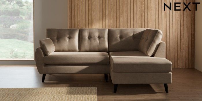 7.3.1 Buy Wilson Buttoned Back Medium Corner Chaise - Right Hand Luxe Chenille Mid Camel Beige Retro Tapered - Dark from the Laura Ashley online shop