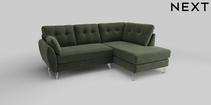 6.12.1 Buy Wilson Buttoned Back Medium Corner Chaise - Right Hand Luxe Chenille Mid Green Metal Tapered - Chrome from the Laura Ashley online shop Click here to use our website with more accessibility support, for example screen readers