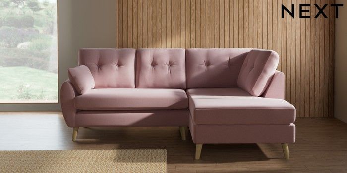 7.3.1 Buy Wilson Buttoned Back Medium Corner Chaise - Right Hand Natural Mix Light Rose Pink Retro Tapered - Light from the Laura Ashley online shop