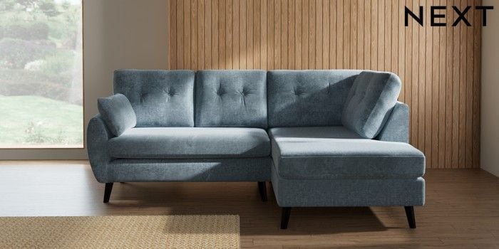 7.3.1 Buy Wilson Buttoned Back Medium Corner Chaise - Right Hand Plush Chenille Light Blue Retro Tapered - Dark from the Laura Ashley online shop