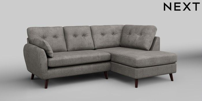 6.12.1 Buy Wilson Buttoned Back Medium Corner Chaise - Right Hand Plush Chenille Light Grey Retro Tapered - Dark Brown from the Laura Ashley online shop Click here to use our website with more accessibility support, for example screen readers