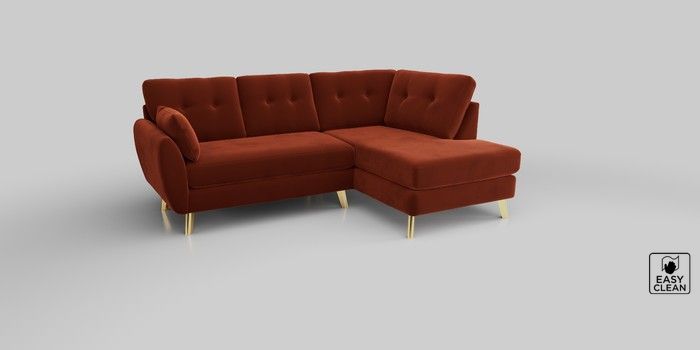 6.12.1 Buy Wilson Buttoned Back Medium Corner Chaise - Right Hand Plush Velvet Easy Clean Ginger Orange Metal Tapered - Gold from the Laura Ashley online shop Click here to use our website with more accessibility support, for example screen readers