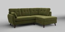 6.12.1 Buy Wilson Buttoned Back Medium Corner Chaise - Right Hand Plush Velvet Easy Clean Mid Olive Green Retro Tapered - Dark Brown from the Laura Ashley online shop Click here to use our website with more accessibility support, for example screen readers