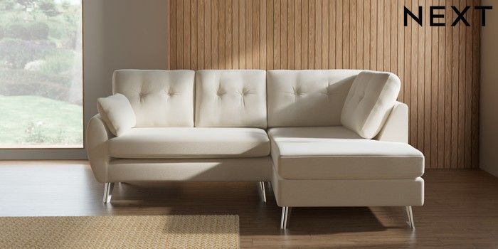 7.3.1 Buy Wilson Buttoned Back Medium Corner Chaise - Right Hand Ripple Chenille Oyster Metal Tapered - Chrome from the Laura Ashley online shop Click here to use our website with more accessibility support, for example screen readers