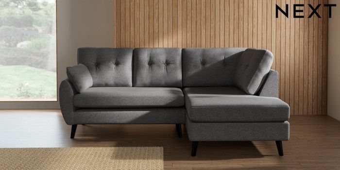7.3.1 Buy Wilson Buttoned Back Medium Corner Chaise - Right Hand Studio Chenille Mid Grey Retro Tapered - Dark from the Laura Ashley online shop