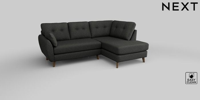 6.12.1 Buy Wilson Buttoned Back Medium Corner Chaise - Right Hand Tweedy Blend Easy Clean Charcoal Grey Retro Tapered - Mid from the Laura Ashley online shop Click here to use our website with more accessibility support, for example screen readers