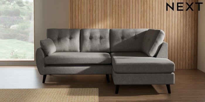 7.3.1 Buy Wilson Buttoned Back Medium Corner Chaise - Right Hand Tweedy Chenille Mid Grey Retro Tapered - Dark from the Laura Ashley online shop