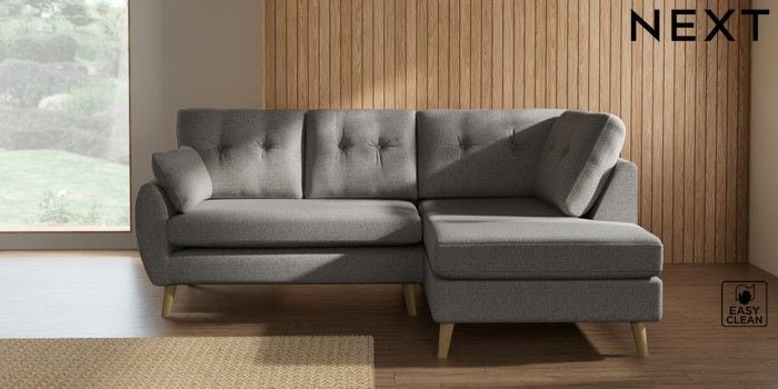 7.3.1 Buy Wilson Buttoned Back Medium Corner Chaise - Right Hand Woven Chenille Easy Clean Light Grey Retro Tapered - Light from the Laura Ashley online shop