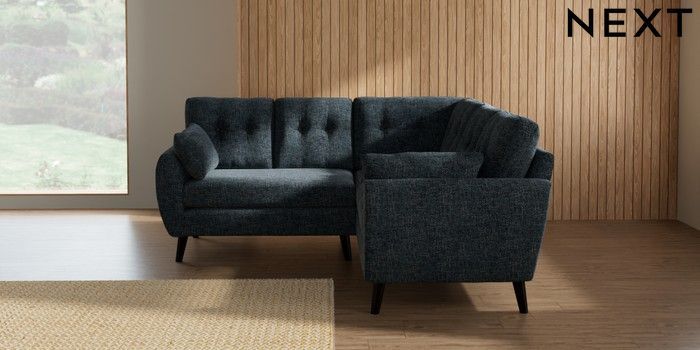 7.3.1 Buy Wilson Buttoned Back Small Corner Sofa - Universal Chunky Chenille Dark Navy Blue Retro Tapered - Dark from the Laura Ashley online shop