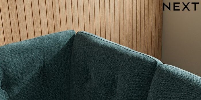 7.3.1 Buy Wilson Buttoned Back Small Corner Sofa - Universal Chunky Chenille Mid Teal Green Retro Tapered - Dark from the Laura Ashley online shop