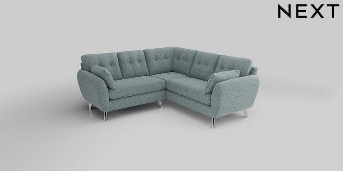 6.12.1 Buy Wilson Buttoned Back Small Corner Sofa - Universal Chunky Marl Mid Blue Metal Tapered - Chrome from the Laura Ashley online shop Click here to use our website with more accessibility support, for example screen readers
