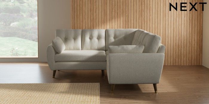 7.3.1 Buy Wilson Buttoned Back Small Corner Sofa - Universal Chunky Texture Oyster Low Retro Tapered Metal Cap - Mid from the Laura Ashley online shop Click here to use our website with more accessibility support, for example screen readers