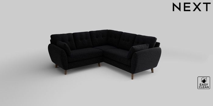 6.12.1 Buy Wilson Buttoned Back Small Corner Sofa - Universal Fine Chenille Easy Clean Black Retro Tapered - Mid from the Laura Ashley online shop Click here to use our website with more accessibility support, for example screen readers