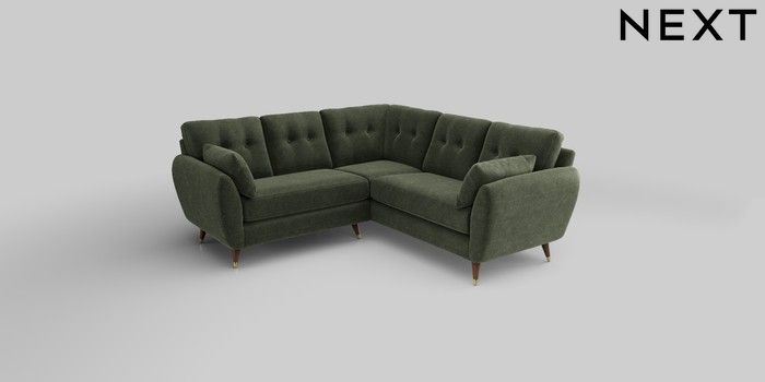 6.12.1 Buy Wilson Buttoned Back Small Corner Sofa - Universal Luxe Chenille Mid Green Low Retro Tapered Metal Cap - Mid from the Laura Ashley online shop Click here to use our website with more accessibility support, for example screen readers