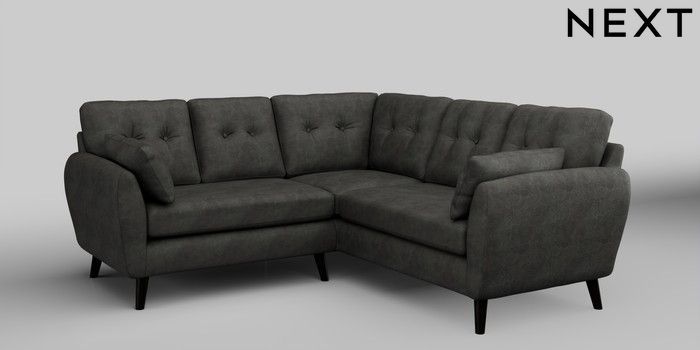 6.12.1 Buy Wilson Buttoned Back Small Corner Sofa - Universal Monza Faux Leather Easy Clean Dark Grey Retro Tapered - Dark from the Laura Ashley online shop Click here to use our website with more accessibility support, for example screen readers