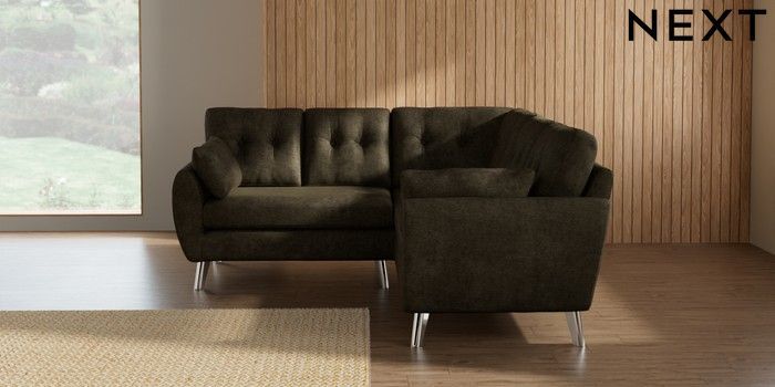 7.3.1 Buy Wilson Buttoned Back Small Corner Sofa - Universal Plush Chenille Moss Green Metal Tapered - Chrome from the Laura Ashley online shop