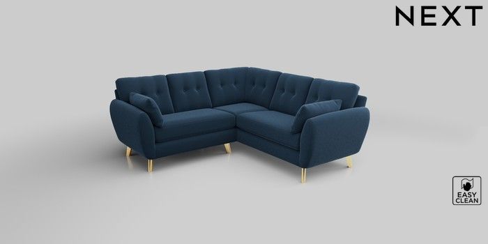 6.12.1 Buy Wilson Buttoned Back Small Corner Sofa - Universal Plush Velvet Easy Clean Airforce Blue Metal Tapered - Gold from the Laura Ashley online shop Click here to use our website with more accessibility support, for example screen readers