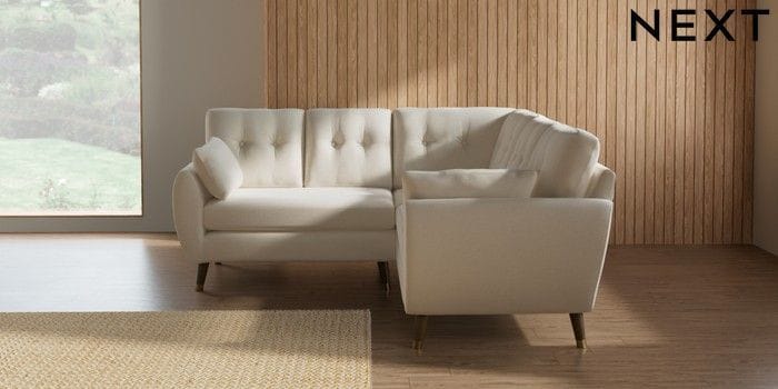 7.3.1 Buy Wilson Buttoned Back Small Corner Sofa - Universal Ripple Chenille Oyster Low Retro Tapered Metal Cap - Mid from the Laura Ashley online shop Click here to use our website with more accessibility support, for example screen readers
