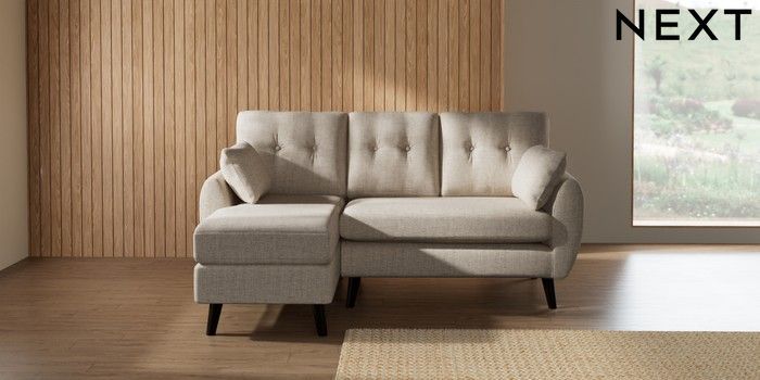 7.3.1 Buy Wilson Buttoned Back Small Sofa Chaise - Left Hand Chunky Weave Mid Natural Retro Tapered - Dark from the Laura Ashley online shop Click here to use our website with more accessibility support, for example screen readers