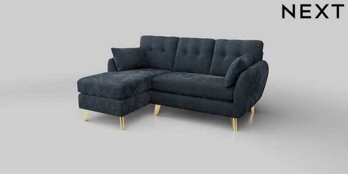 6.12.1 Buy Wilson Buttoned Back Small Sofa Chaise - Left Hand Distressed Velour Midnight Blue Metal Tapered - Gold from the Laura Ashley online shop Click here to use our website with more accessibility support, for example screen readers