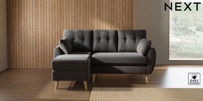 7.3.1 Buy Wilson Buttoned Back Small Sofa Chaise - Left Hand Fine Chenille Easy Clean Dark Smoke Grey Retro Tapered - Light from the Laura Ashley online shop Click here to use our website with more accessibility support, for example screen readers