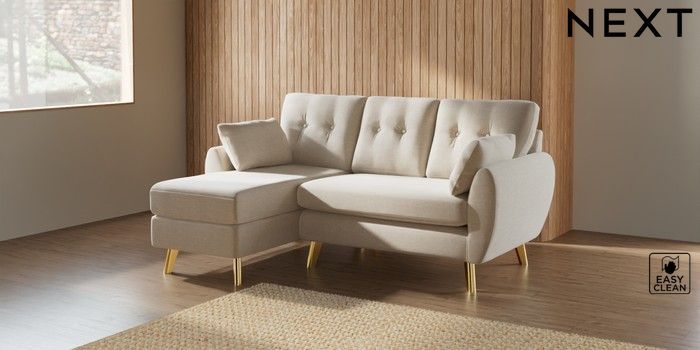 7.2.10 Buy Wilson Buttoned Back Small Sofa Chaise - Left Hand Fine Chenille Easy Clean Oyster Metal Tapered - Gold from the Laura Ashley online shop Click here to use our website with more accessibility support, for example screen readers