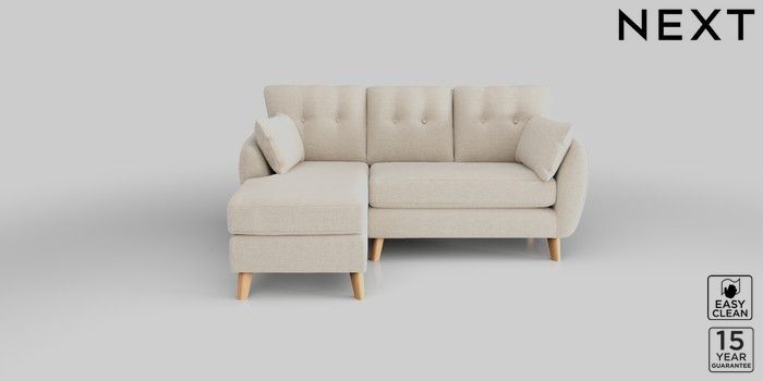 6.11.4 Buy Wilson Buttoned Back Small Sofa Chaise - Left Hand Fine Chenille Easy Clean Oyster Retro Tapered - Light from the Laura Ashley online shop Click here to use our website with more accessibility support, for example screen readers