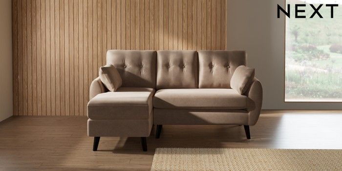 7.3.1 Buy Wilson Buttoned Back Small Sofa Chaise - Left Hand Luxe Chenille Mid Natural Retro Tapered - Dark from the Laura Ashley online shop