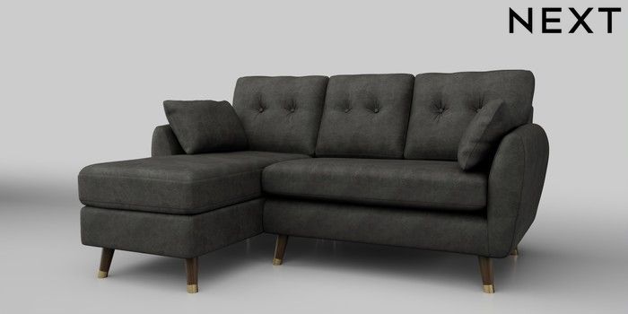 6.12.1 Buy Wilson Buttoned Back Small Sofa Chaise - Left Hand Monza Faux Leather Easy Clean Dark Grey Low Retro Tapered Metal Cap - Mid from the Laura Ashley online shop Click here to use our website with more accessibility support, for example screen readers