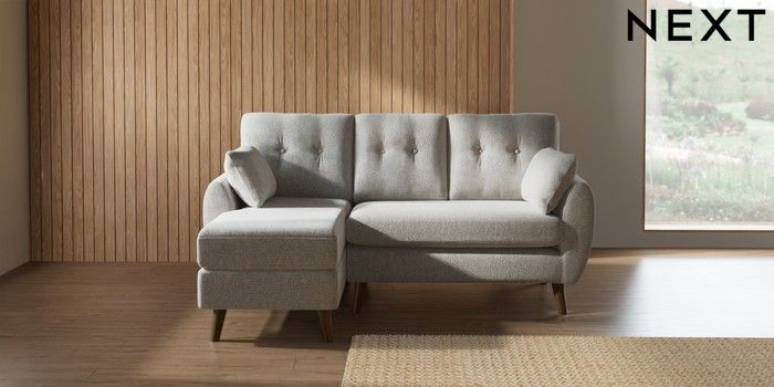 7.3.1 Buy Wilson Buttoned Back Small Sofa Chaise - Left Hand Multi Weave Light Blue Retro Tapered - Mid from the Laura Ashley online shop
