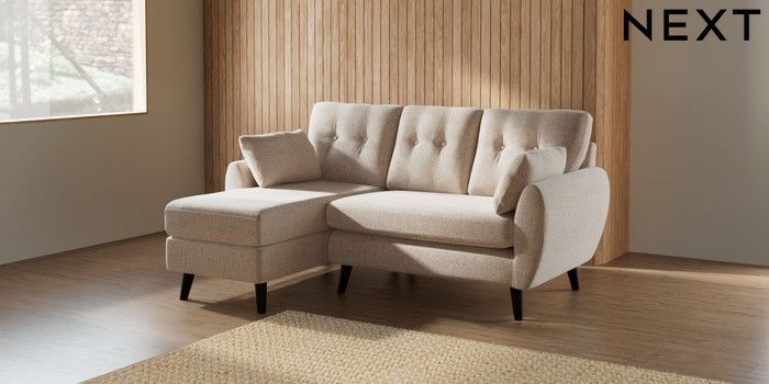 7.2.6 Buy Wilson Buttoned Back Small Sofa Chaise - Left Hand Multi Weave Mid Natural Retro Tapered - Dark from the Laura Ashley online shop Click here to use our website with more accessibility support, for example screen readers