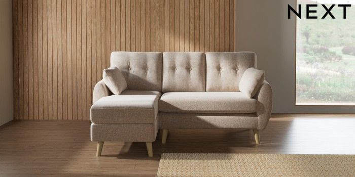 7.3.1 Buy Wilson Buttoned Back Small Sofa Chaise - Left Hand Multi Weave Mid Natural Retro Tapered - Light from the Laura Ashley online shop