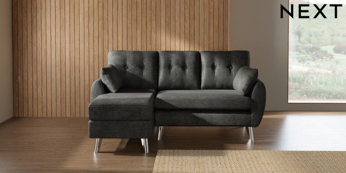 7.3.1 Buy Wilson Buttoned Back Small Sofa Chaise - Left Hand Plush Chenille Dark Grey Metal Tapered - Chrome from the Laura Ashley online shop Click here to use our website with more accessibility support, for example screen readers