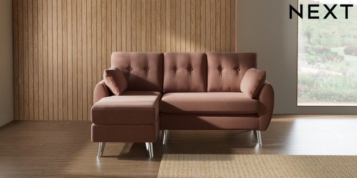 7.3.1 Buy Wilson Buttoned Back Small Sofa Chaise - Left Hand Relaxed Linen Look Light Rust Brown Metal Tapered - Chrome from the Laura Ashley online shop
