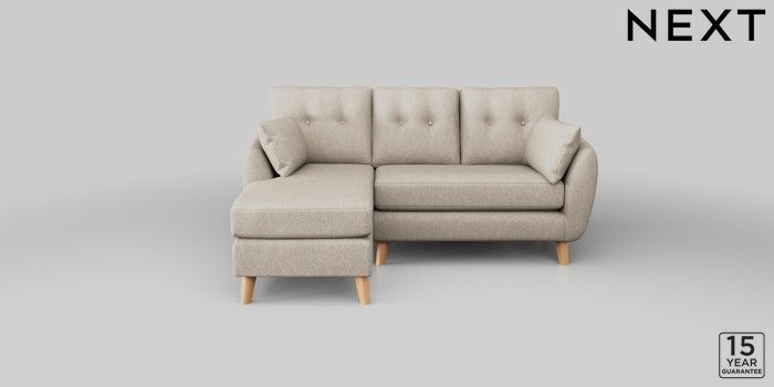 6.11.4 Buy Wilson Buttoned Back Small Sofa Chaise - Left Hand Tweedy Chenille Mid Natural Retro Tapered - Light from the Laura Ashley online shop Click here to use our website with more accessibility support, for example screen readers
