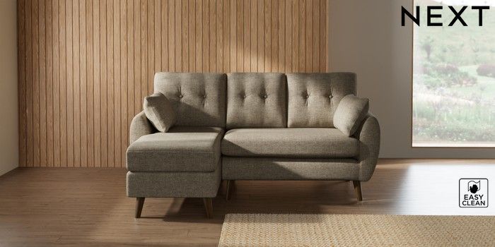 7.3.1 Buy Wilson Buttoned Back Small Sofa Chaise - Left Hand Woven Chenille Easy Clean Mid Natural Retro Tapered - Mid from the Laura Ashley online shop