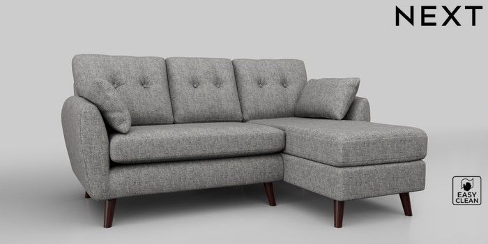 6.12.1 Buy Wilson Buttoned Back Small Sofa Chaise - Right Hand Chunky Boucle Easy Clean Light Grey Retro Tapered - Dark Brown from the Laura Ashley online shop Click here to use our website with more accessibility support, for example screen readers