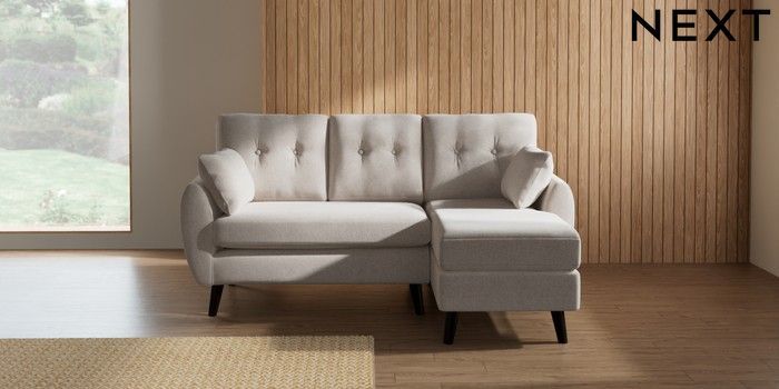7.3.1 Buy Wilson Buttoned Back Small Sofa Chaise - Right Hand Chunky Chenille Oyster Retro Tapered - Dark from the Laura Ashley online shop
